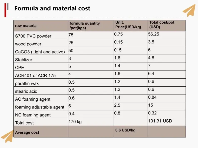 nedan är en grundläggande formel för referens och materialkostnad endast för referens, materialkostnaden kan ändras varje vecka.