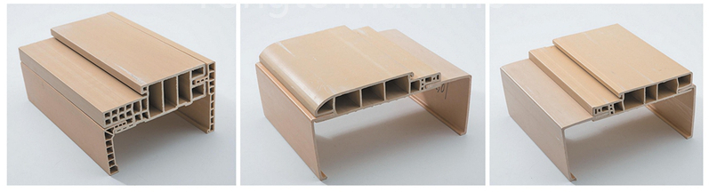 PE-plast + 10%-15% glasfiberförstärkt + 50-60% träpulver + anti-aging co-extruderat lager + förstärkt struktur |