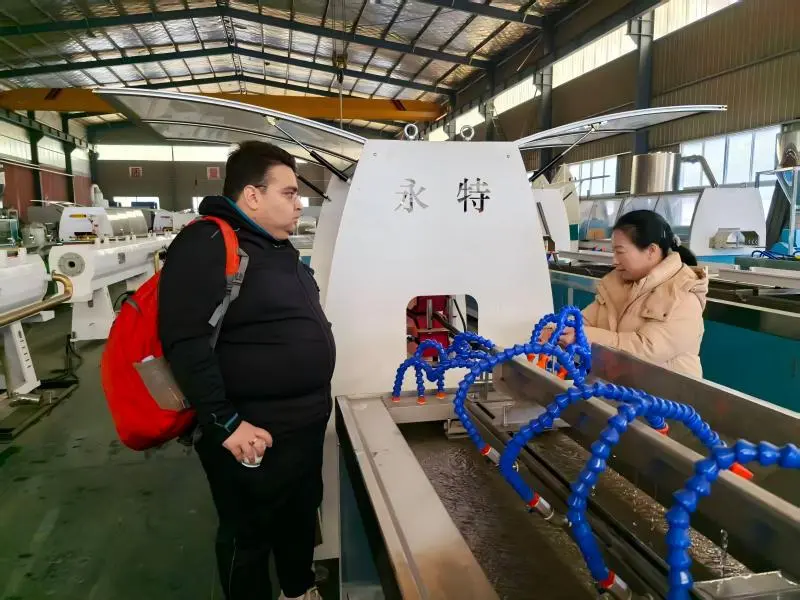 Nyligen besökte en kund från Indien vår fabrik för att inspektera vår drift på platsmaskin för bevattning av gummi. den här maskinen är speciellt utformad för att tillverka bevattningsrör mot igensättning av gummiavfall.